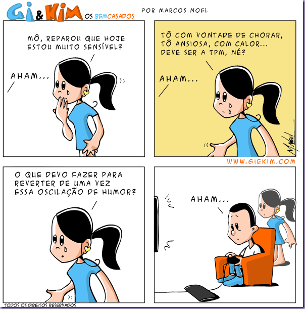 Há relatos de mulheres que cometeram verdadeiros genocídios nessa fase. Desconfio até que várias limpezas étnicas tenham sido comandadas por mulheres na TPM. Exagero à parte, realmente essa é a pior fase do ciclo tepeêmico. Você chega na casa dela, ela está de pijama, pantufas e descabelada. A cara não é das melhores quando ela te dá um beijo bem rápido, seco e sem língua. Depois de alguns minutos de silêncio total da parte dela, você percebe que ela está assistindo aquele canal japonês que nem ela nem você sabem o nome. Parece ser uma novela ambientada na era feudal. Sem legendas...